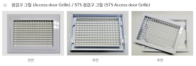 일반 GRILLE(그릴) 일 경우, DUCT 내 점검 상황 이나 청소가 필요할 때 고정된 피스를 풀어야 되지만