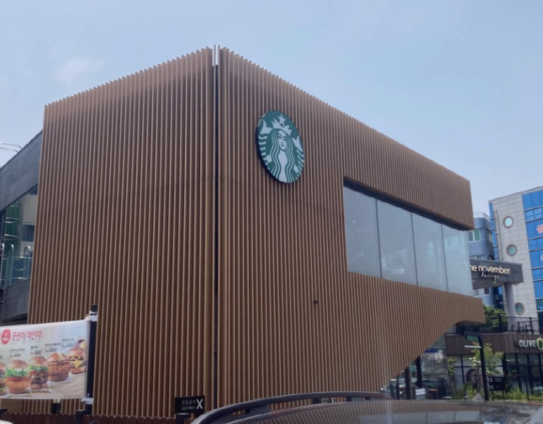 제주도에도 스타벅스 매장이 많지만 외부 목무늬로 디자인되어 설치되었습니다