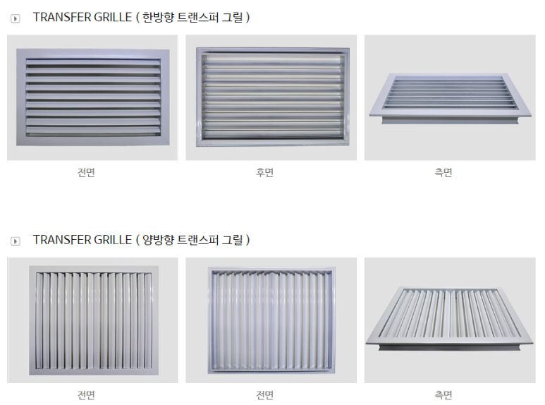 1)기능 : 날개 살이 격자로 되어있는 그릴의 종류이며, 수동으로 후면 날개를 개폐할 수 있다.