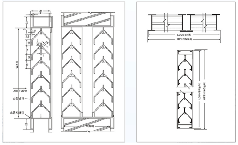 1)기능 : 일반 louver와 성능은 동일하며, 세트루버의 특징은 루버의 제품 특성상 기역 자 Frame 형태로