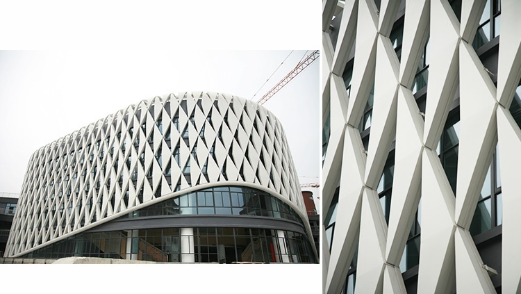 이처럼 알루미늄 외장재는 다양한 형태로 가공하여 사용가능하기 때문에 건물에 적용이 매우 다양합니다.