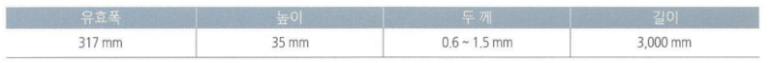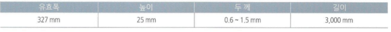 유효폭 : 339mm / 높이 17mm / 두께 0.6~1.5mm/ 길이 3000mm