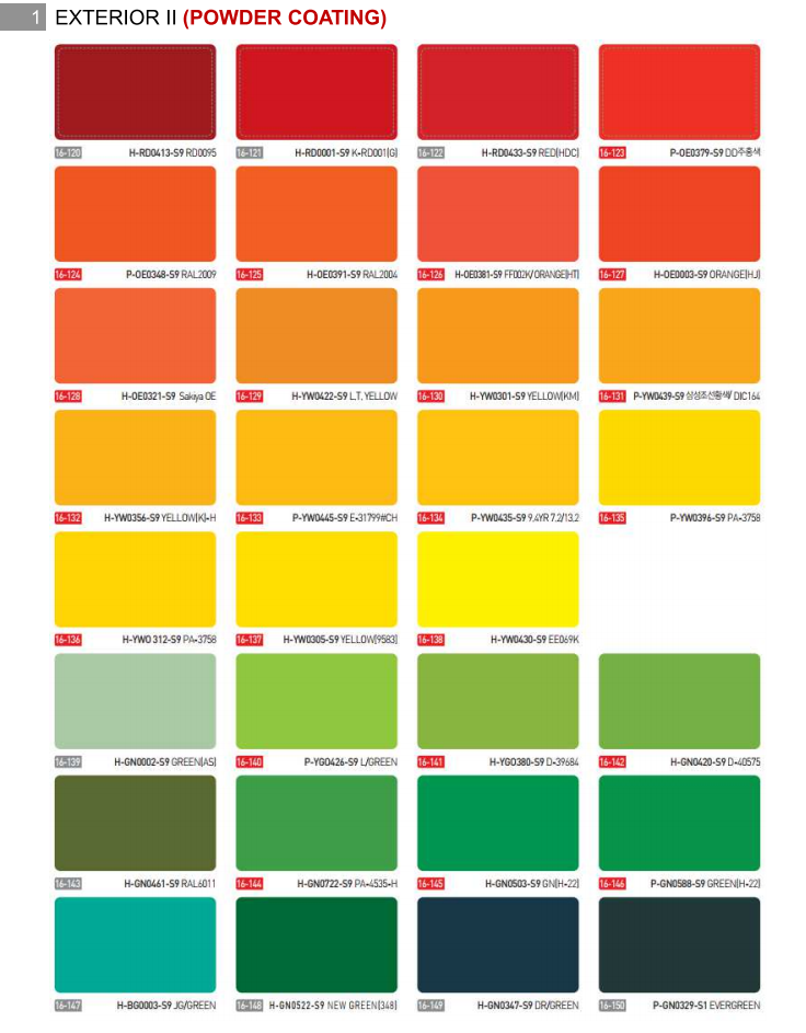 미국, 호주, 캐나다 등에서 많이 사용되며 분체도장도 색감이 다양해 실내 인테리어 제품에 많이 사용됩니다. 내구성은 도료의 종류에 따라 10~20년까지 보장됩니다