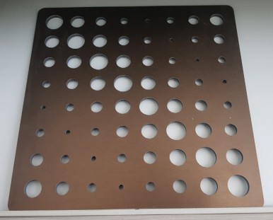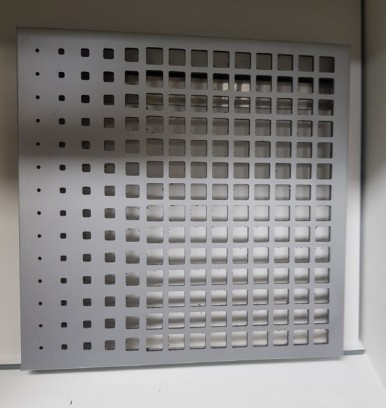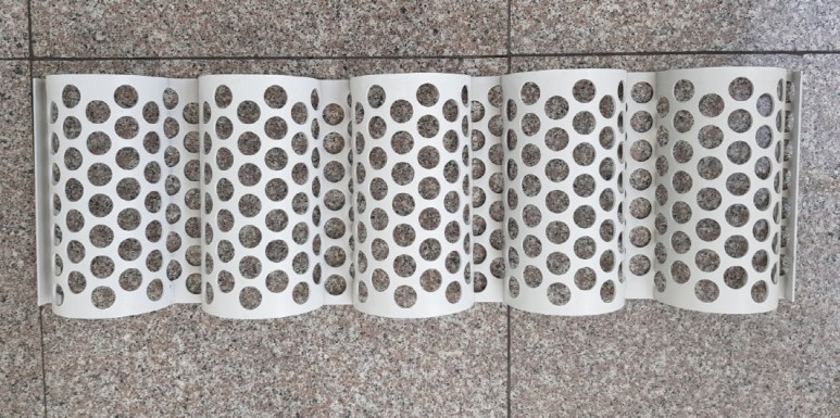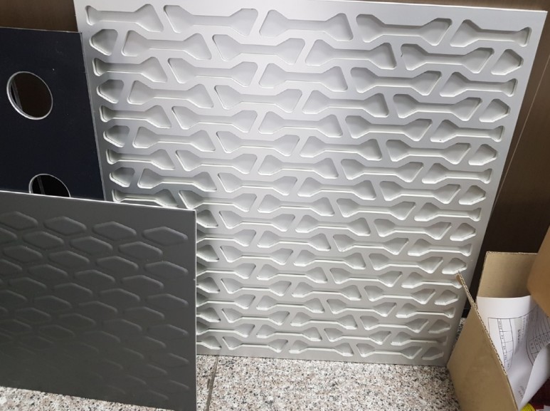 금속시트에 타공을 한다음 다시 절단 절곡을 통해서 다양한 디자인을 만들어 내는 경우 입니다