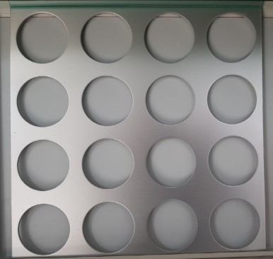 원형타공은 가장 보편적으로 사용되는 타공이지만 재질에 따라서 혹은 홀의 배치에 따라서