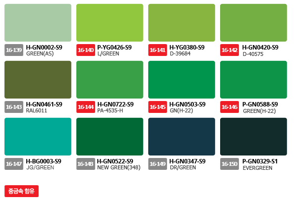 삼화페인트가 국내분체도료 1위 업체인 만큼 다양한 컬러라인을 보유하고 있습니다.