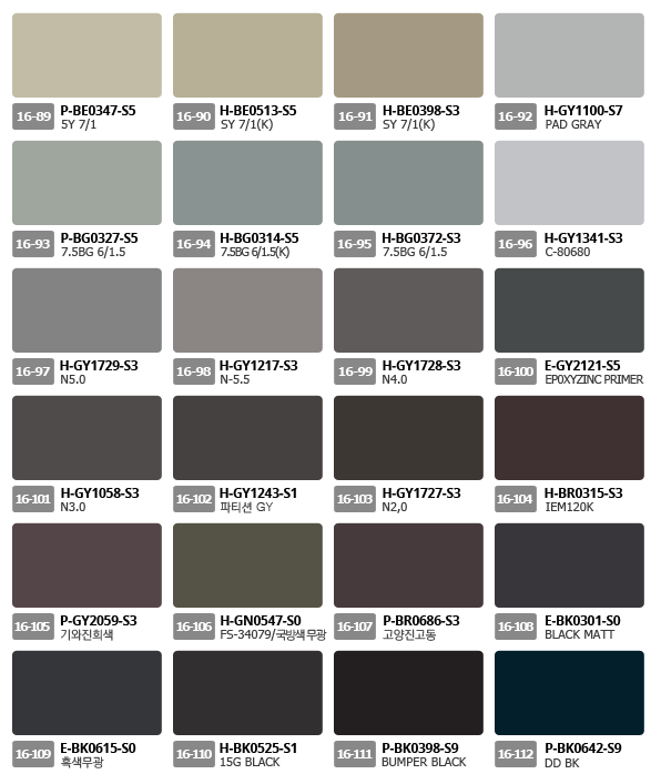 분체도장하면 가장 많이 사용하는 삼화페이트 분체도료 색상표입니다