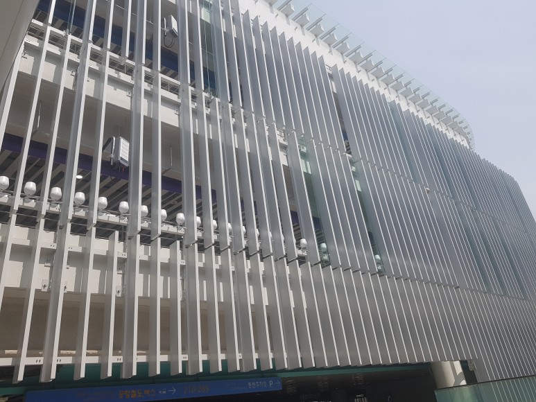 인천공항 T2 주차장에 설치된 알루미늄 루버입니다