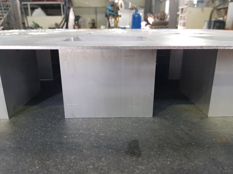 넓은 면적의 알루미늄 시트에 49개나 되는 사각형태의 바를 용접하게 되면 가장 큰 문제가 시트가