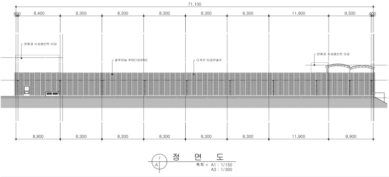 타공홀의 크기는 80파이인데 이게 조금 크다는 의왕시청의 요청에 따라 50파이 크기로 설게 변경하였습니다. 또한 타공판의 폭을 기존1000mm 1100mm로 수정하게 되었습니다.