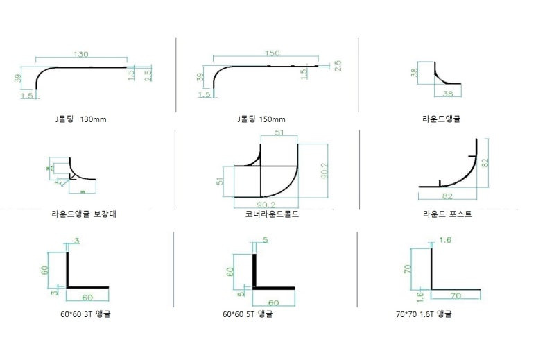 판넬공사에 사용되는 알루미늄 부자재는 매우 다양한 종류가 있습니다.