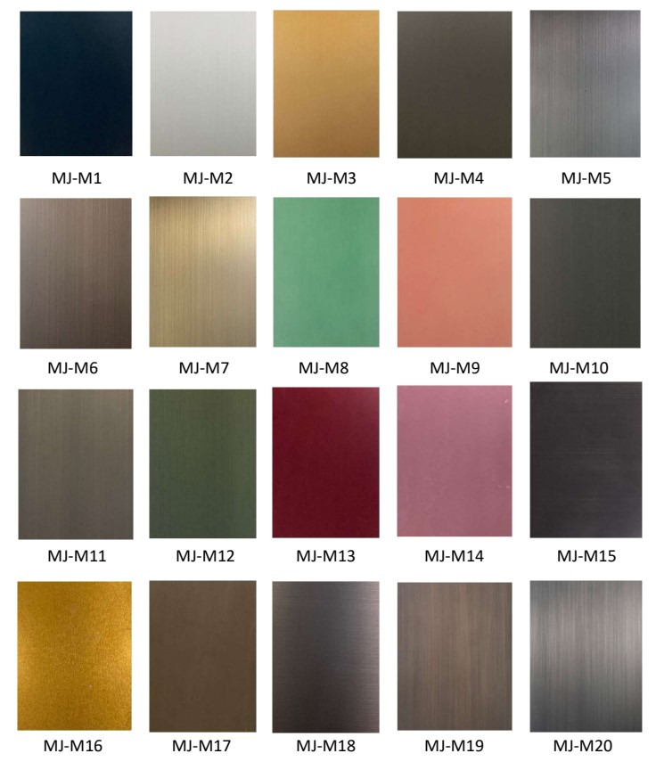 발색은 산화처리를 통하여 표면에 다양한 컬러를 구현하고 기존 스테인레스의 반사율을 줄여 눈부심이 없는 자연스러운 색상처리가 가능합니다.