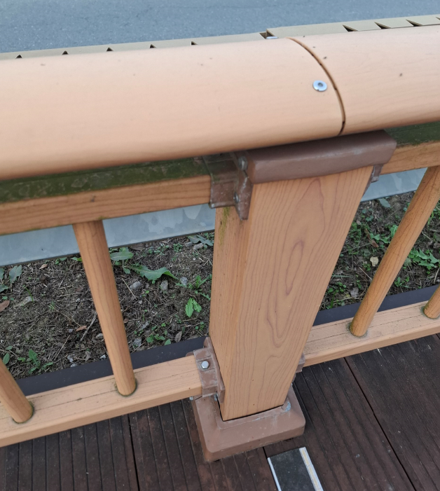 특히나 호수주변 가로수길이다보니 습기가 많고 이끼도 많이 껴서 금속부식이 더 빨라지고 물론 필림도 벗겨지는 상황이 도래할것입니다. 특히 뜨거운 여름에 난간제품이 높은 온도를 받으면 금속이 수축과 팽창을