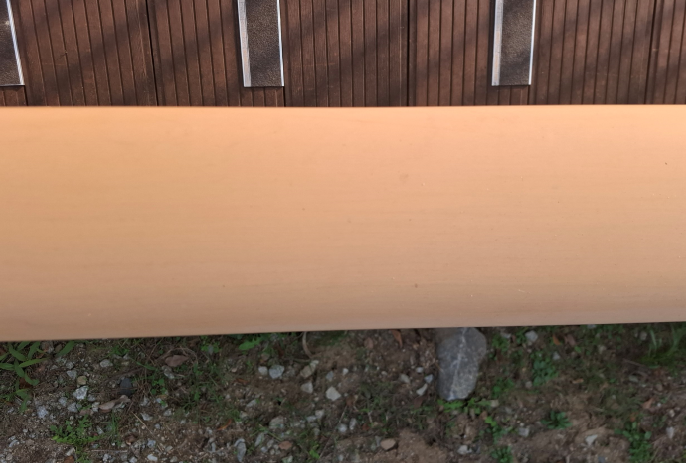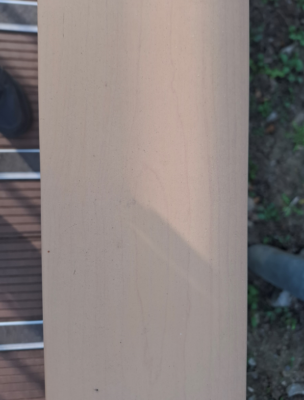 시공된지 1년이 지난상태이며 상층부분은 이미 목무늬는 없어지고 베이스 색상만 남아 있습니다