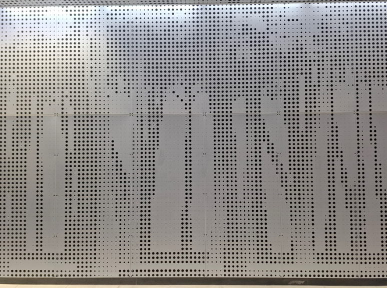지하철 통행로 전면을 디자인 타공으로 시공한 예입니다