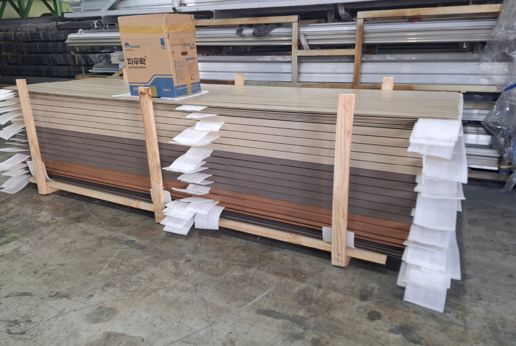 알루미늄 소재에 4중 불소코팅으로 마감됨 나무무늬 불소도장으로 마감됨 스크린루버입니다