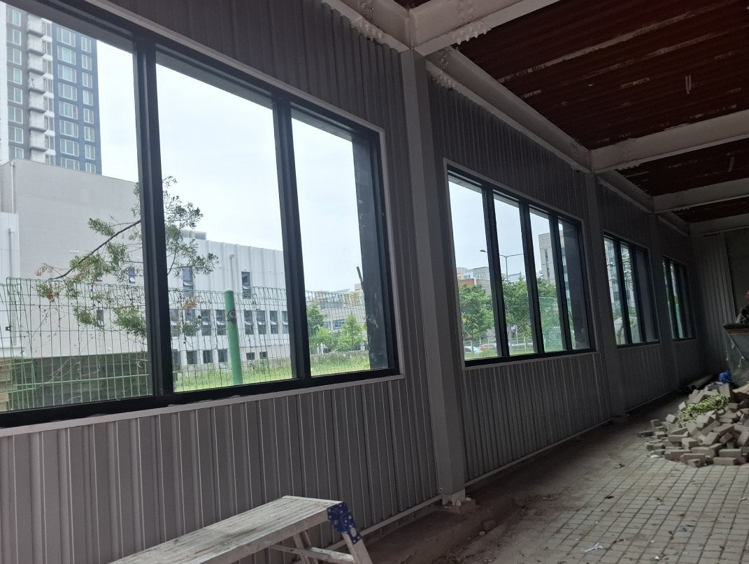 H빔이 지나가는 자리에도 마감후레싱을 두루고 실리콘으로 마감함으로써 깔끔하게 마감되었습니다.