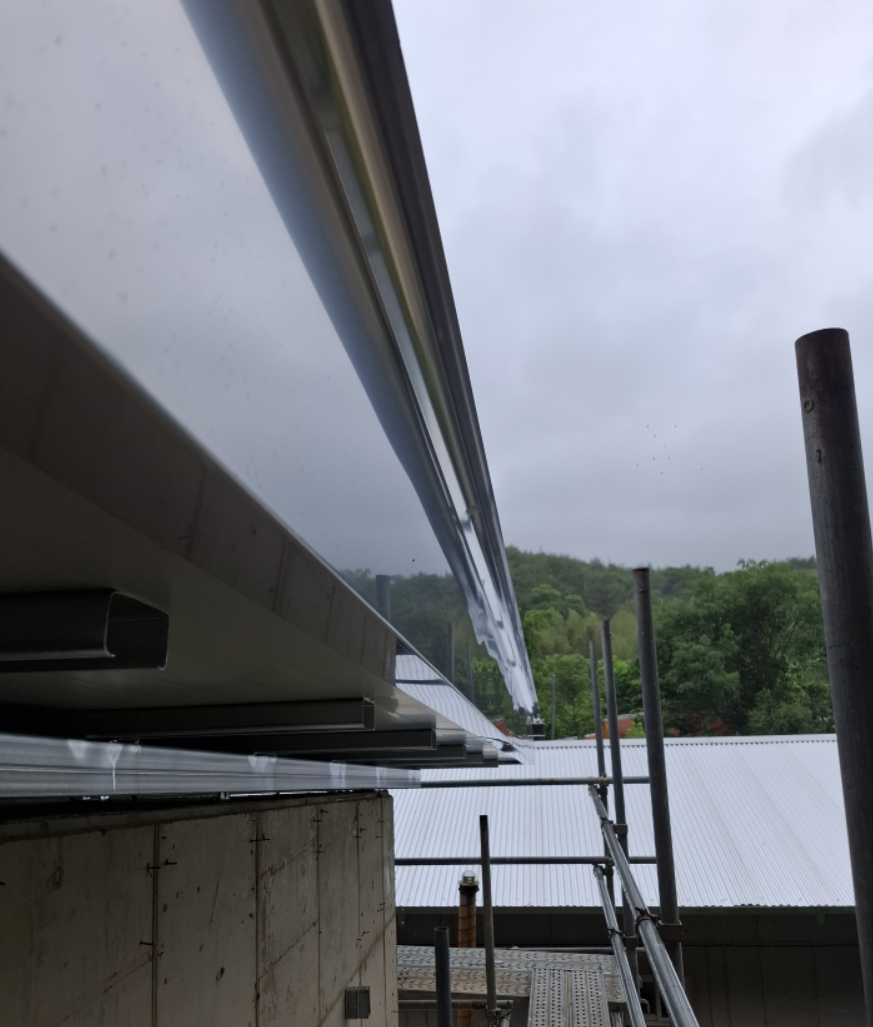 물받이도 알루미늄으로 제작되어 시공되었습니다. 용마루와 마감후레싱도 모두 알루미늄으로 제작되었습니다