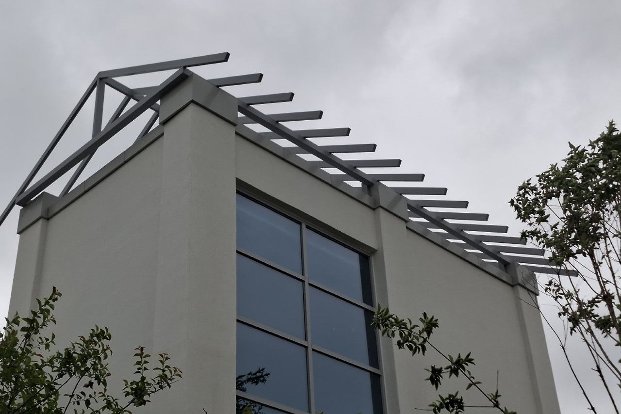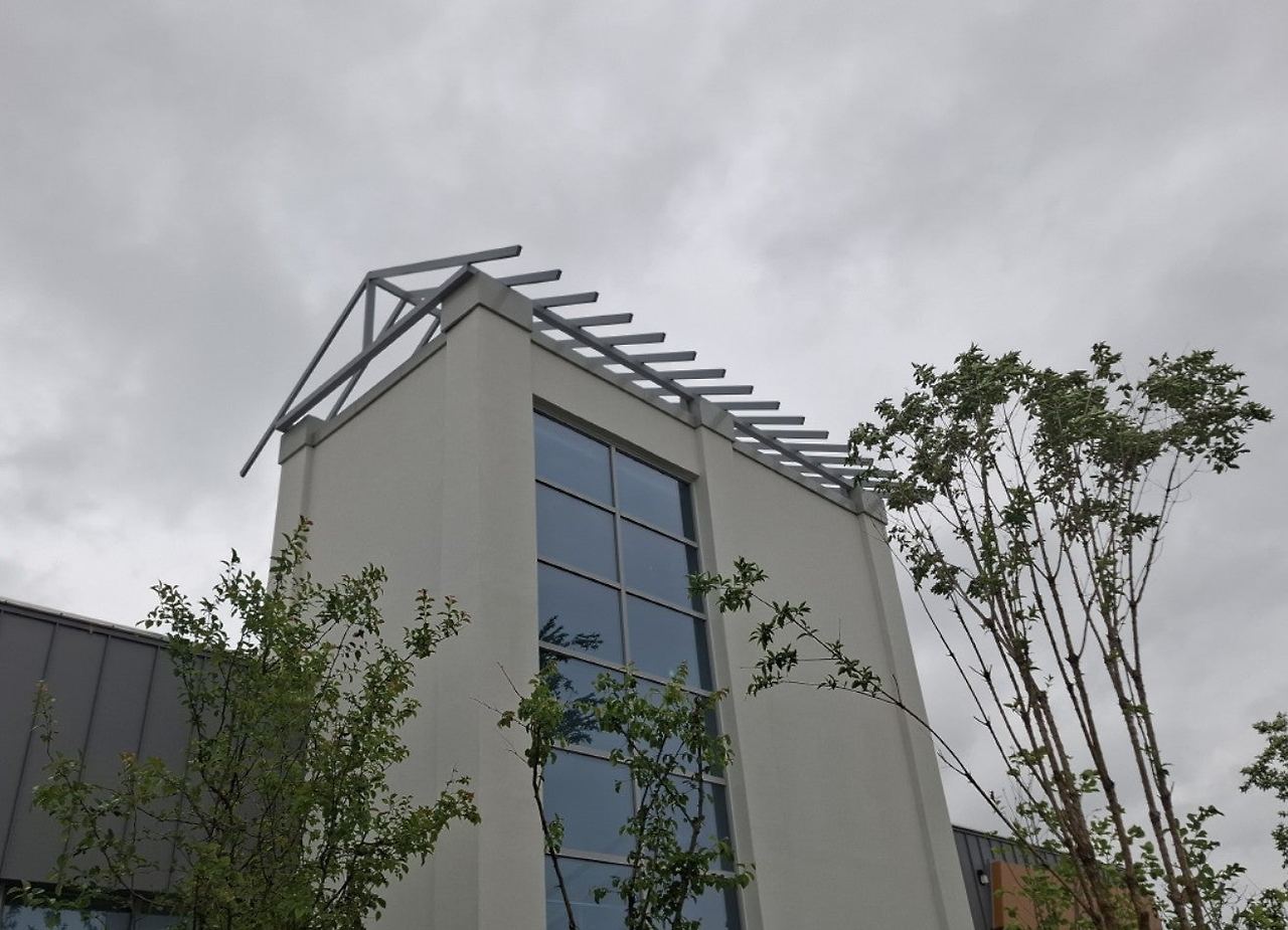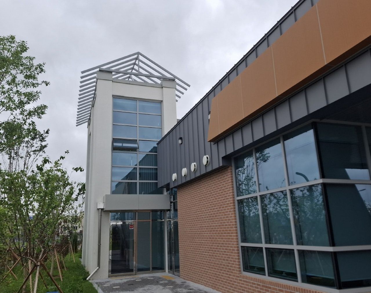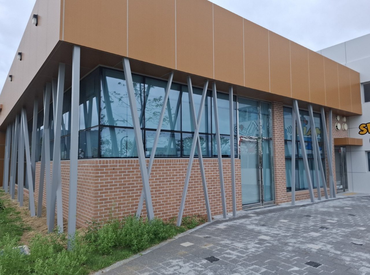 건물 상부에 휴게장소는 박공형태의 루버를 설치하여 전체적인 디자인을 맞춘 케이스입니다.
