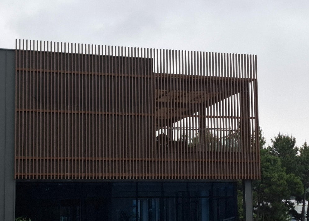 스크린루버는 건물의 차양 역할을 하면서 실외 또는 계단등 건물 일부분을 가리거나 파티션, 파고라 프론트입구, 내벽등에서 포인트 연출용으로 많이 사용됩니다. 빌딩이나 고층건물의 디자인에 많이 활용되기도 하며 세로로 길게 설치하면 건물의 높이가 강조되면서 미관을 극대화하는 역할을 하게됩니다. 가로나 격자로 설치하면 더 다양한 디자인을 고층건물에 구현할수 있습니다.