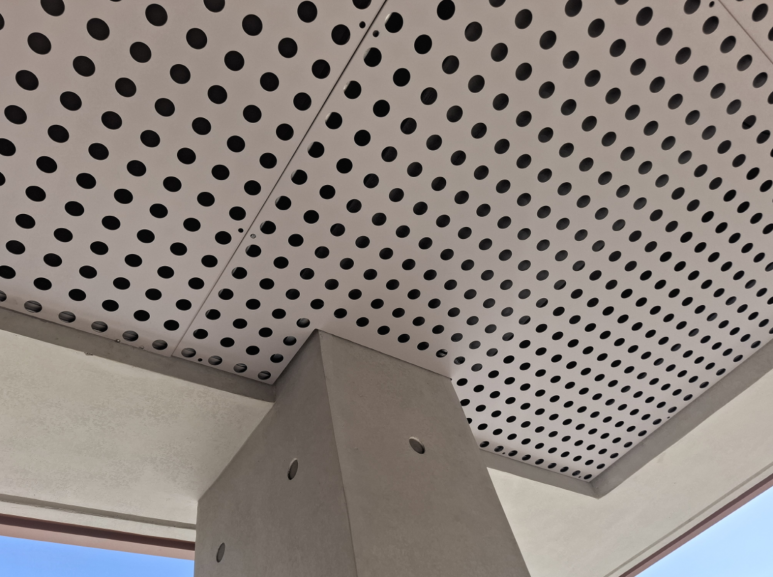 느낌을 주는 형상입니다. 타공크기와 피치에 따라 다양한 느낌과 연출이 가능한데 위의 시공사례는