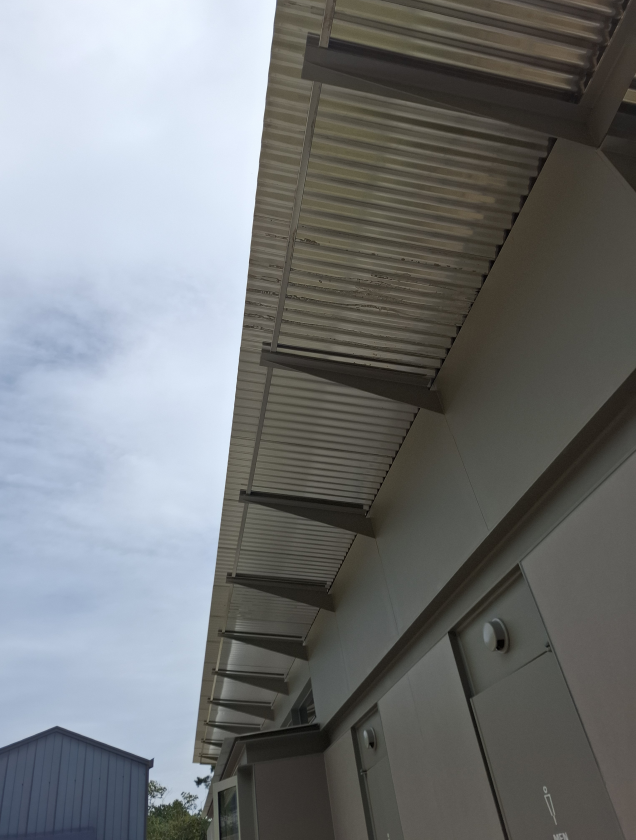 또한 철골빔을 처마형식으로 붙여서 처마깊이를 깊게 만든어 비바람을 충분히 가릴수 있도록 시공되었습니다.