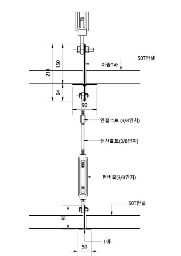 일반적인 이중티바의 시공도면입니다. 상단에 이중티바를 걸고 하단에 일반티바를 걸어서