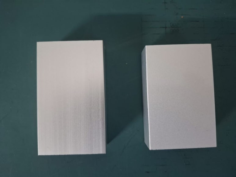 쇼트전착 (쇼트는 알루미늄 표면에 이물질등을 제거하기 위해서 작은 모래알갱이를 알루미늄 표면에 부딪히게 하여 알루미늄 표면을 매끄럽게 하는 작업)이냐에 따라 느낌이나 가격이 달라집니다.
